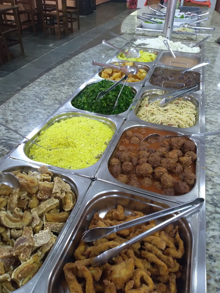 A comida é deliciosa e barata, várias opções de acompanhamento, os funcionários são simpáticos, os banheiros limpos, ambiente de comer espaçoso e limpo .